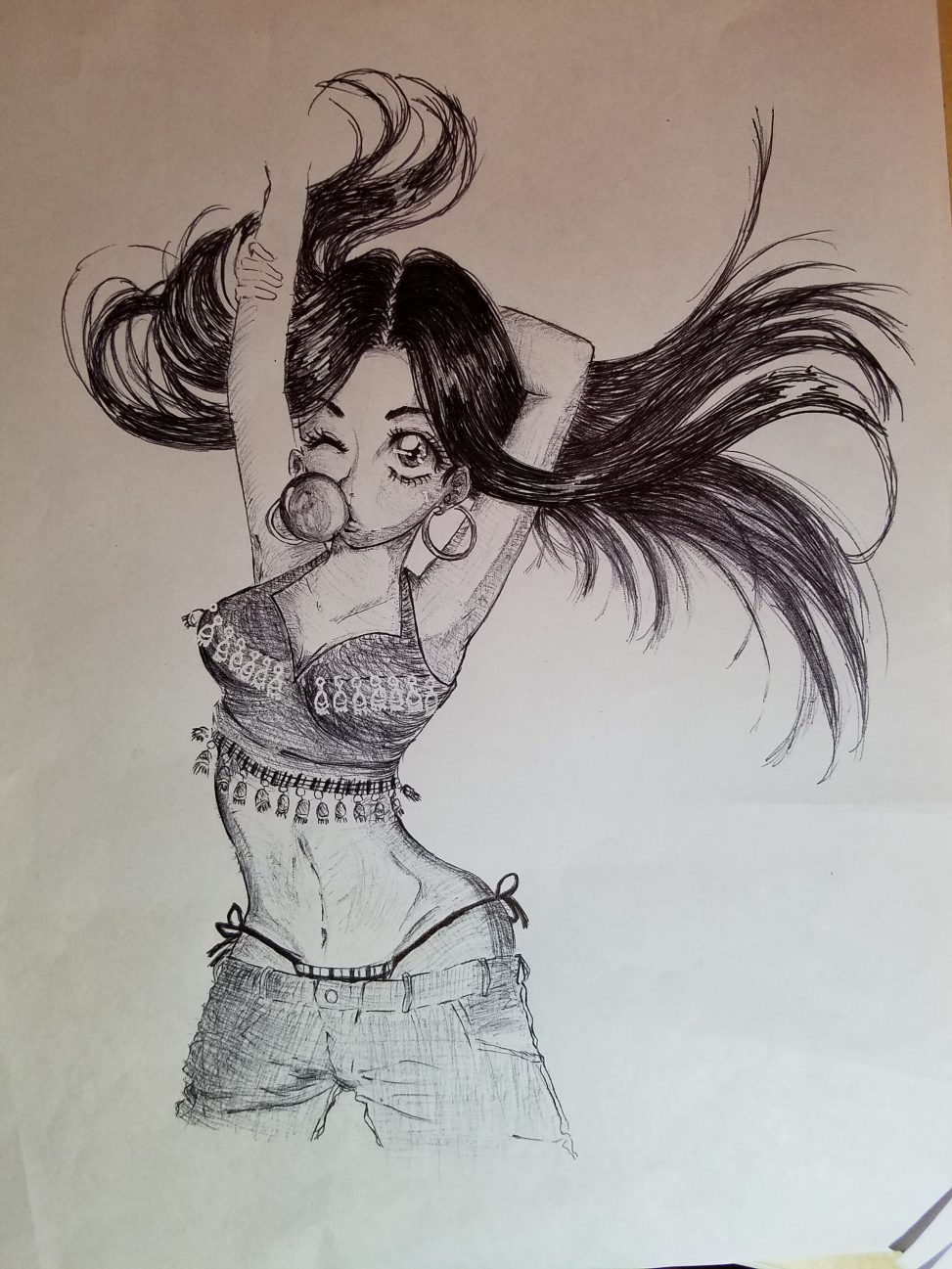 Day 5 of the 30-day drawing challenge! The theme was to draw a black and white picture, so I drew this one using black ink and a white gel pen (no mistakes allowed!). I was inspired by Crystal Kay (YT: Crystal Kay Candy), one of my favorite singers. The title for this picture is “Bubblegum ‘n’ Hiphop”. It’s almost finished! 😁